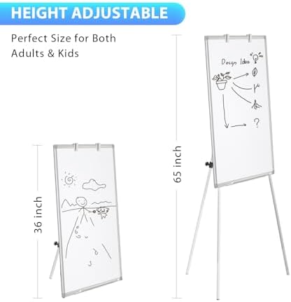 **Easel Whiteboard – Magnetic Portable Dry Erase 36 x 24 Tripod Height Adjustable, 3′ x 2′ Flipchart Easel Stand White Board for Office or Teaching at Home & Classroom (36×24 White)**